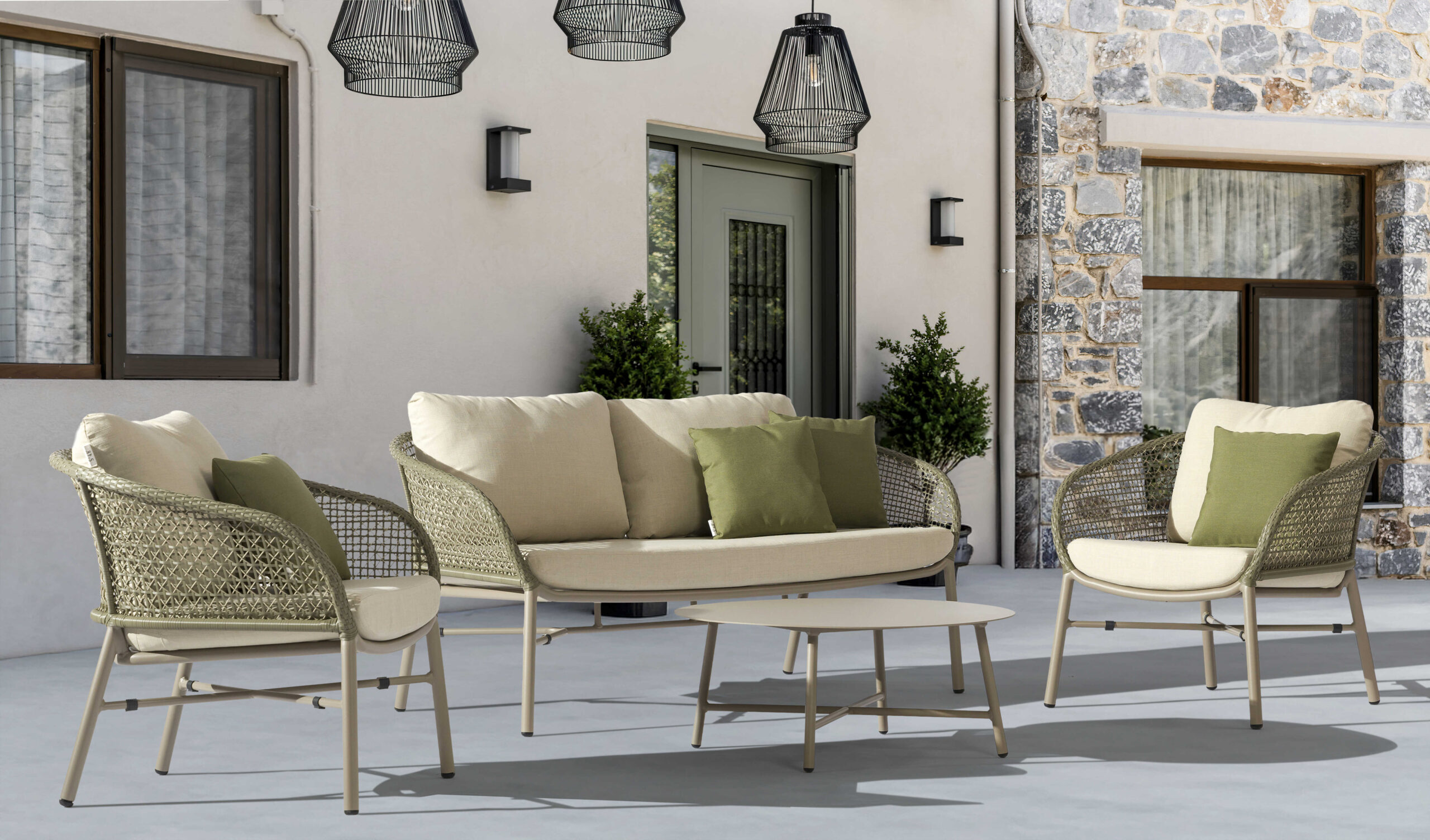 הקולקציה עוצבה בהשראת הקווים העוטפים של הטבע, תוך שימוש בשילוב חומרים איכותי, שלדת אלומיניום חזקה בגימור מט יוקרתי, השזורה בעבודת יד מוקפדת בראטן סינתטי איכותי. המבנה האווירירי והמעוגל של הכורסאות מעניק תחושת ריחוף ונוחות מקסימלית, בעוד שהריפוד בגווני האדמה והזית משלים מראה אלגנטי ועל-זמני. זוהי לא רק מערכת ישיבה, אלא הצהרה עיצובית שהופכת כל גינה או מרפסת לחלל אירוח ייחודי ומזמין
